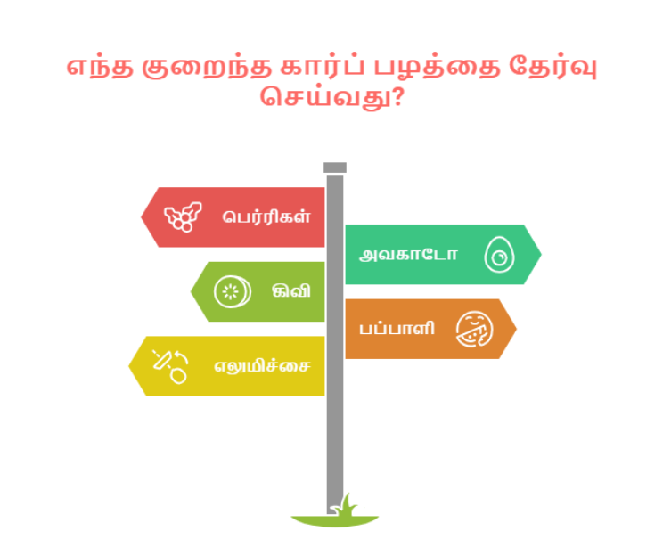 உணவில் இனிப்பை குறைக்க விரும்பும்வர்கள் சர்க்கரை நோயாளிகள் சாப்பிட வேண்டிய சிறந்த பழங்கள் தேர்ந்தெடுத்து ஆரோக்கியத்தைப் பாதுகாக்கலாம். பெர்ரிகள், அவகாடோ, கிவி போன்ற பழங்கள் சர்க்கரை சமநிலையையும் உடல் எடையையும் கட்டுப்படுத்த உதவுகின்றன. தினசரி உணவில் இவற்றைச் சேர்த்து, நார்ச்சத்து மற்றும் சத்துக்கள் நிறைந்த ஆரோக்கியமான வாழ்க்கையை நோக்கி முன்னேறுங்கள். உணவில் சிறிய மாற்றங்கள் பெரிய நலன்களை வழங்கும் இனிப்பு குறைந்த கார்ப் பழங்களுடன் ஆரோக்கியத்தை மகிழ்ச்சியுடன் கொண்டாடுங்கள்!